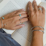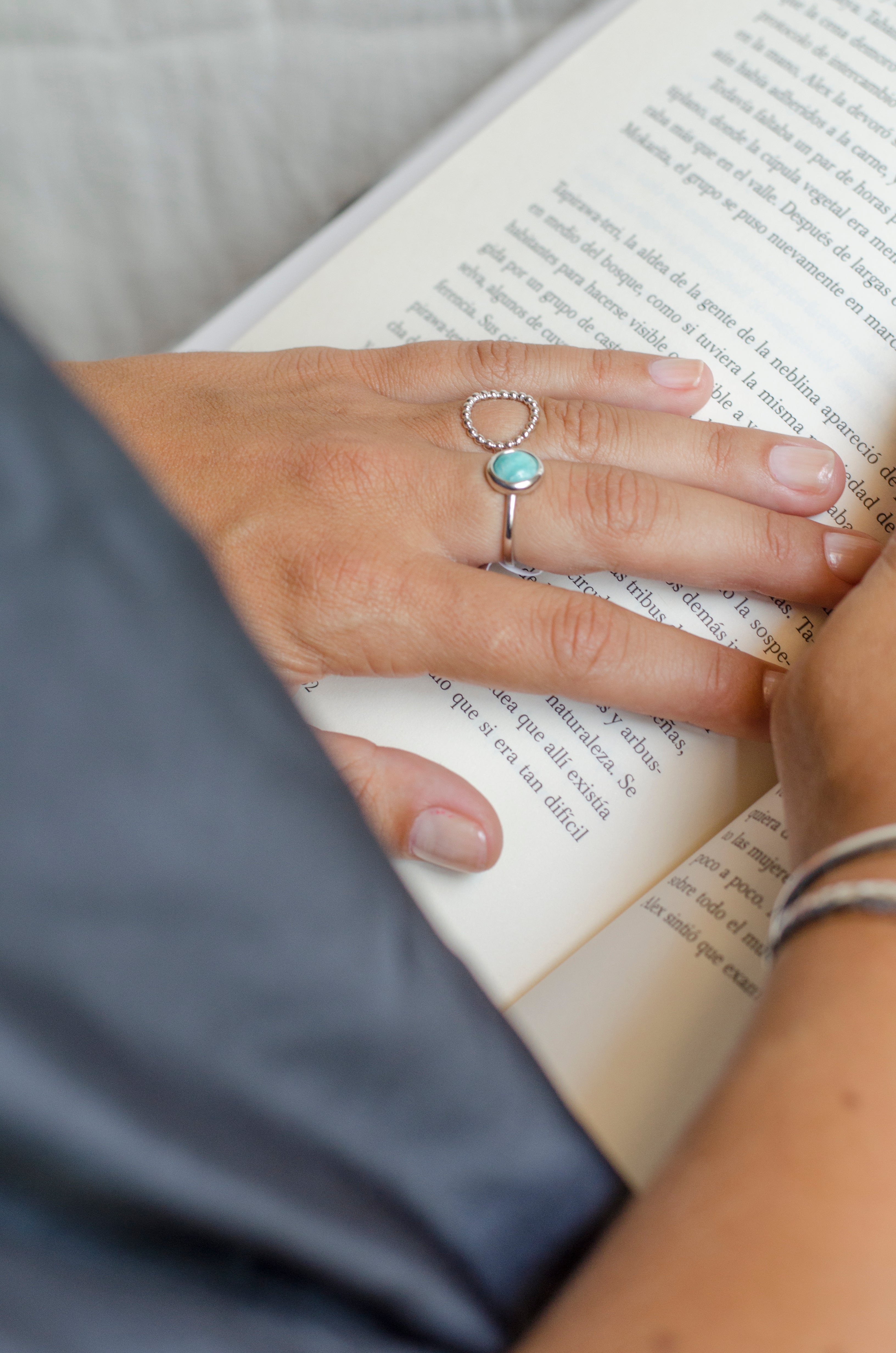 El anillo Amazonita está formado por un aro fino con una amazonita engarzada en su centro.