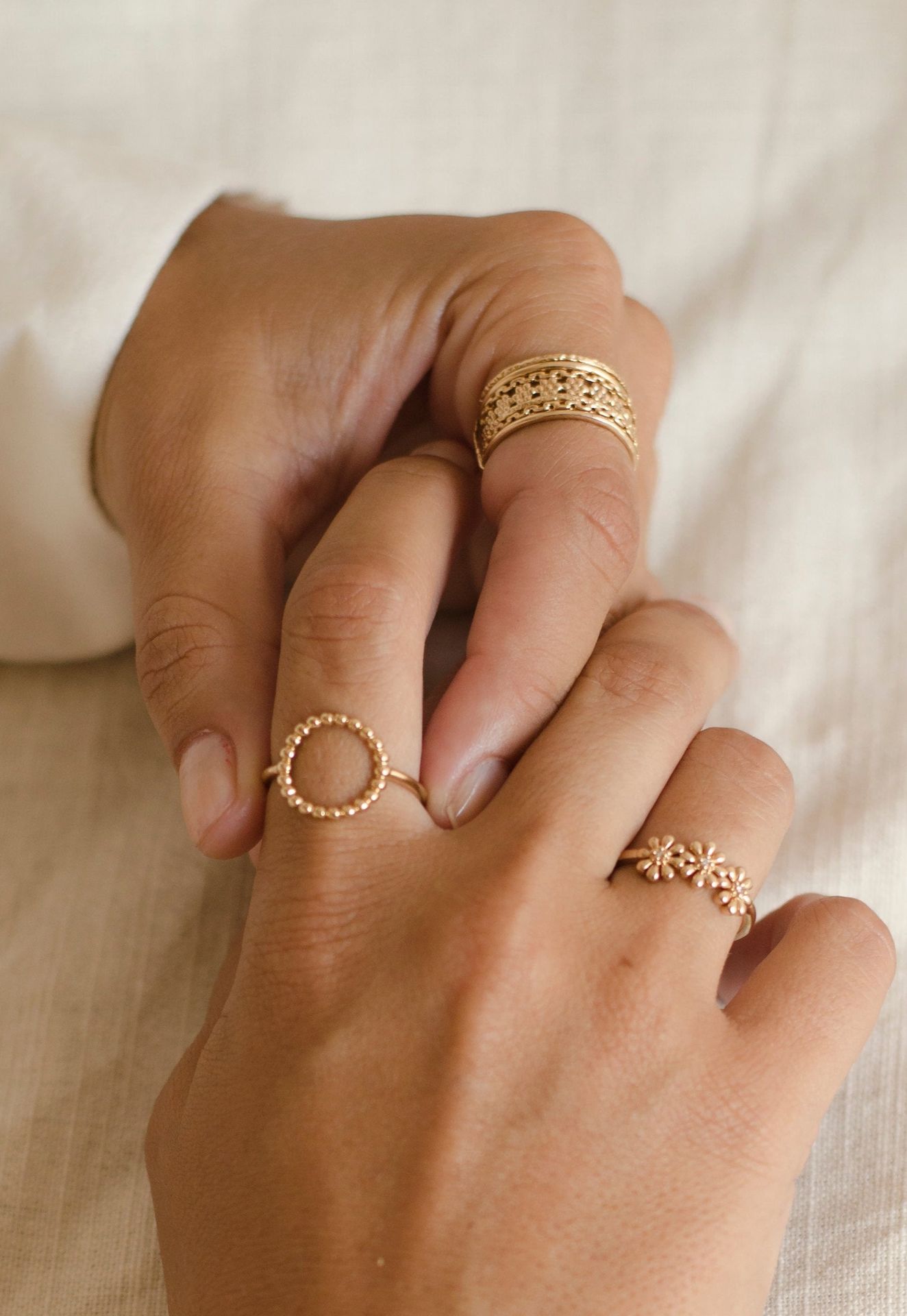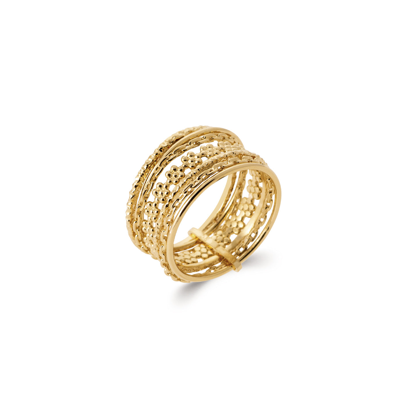 El Anillo Cuca Golden es el perfecto accesorio para lucir de manos bonitas. Infinidad de leyendas explican su simbología. El diseño del anillo, compuesto por 7 anillos unidos, nos recuerda la semana y el paso del tiempo. Fabricado con latón chapado en oro, se destaca por su resistencia y luminosidad. ¡Descubre su significado!