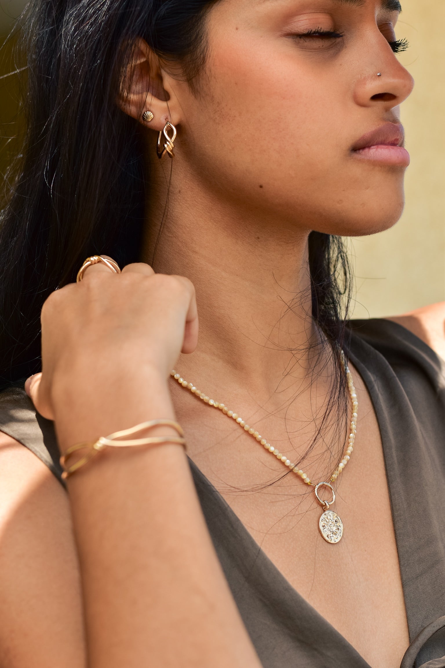 Los aros Dakota estan formados a partir de dos aros unidos por un nudo que los entrelaza hasta convertirlo en uno solo.