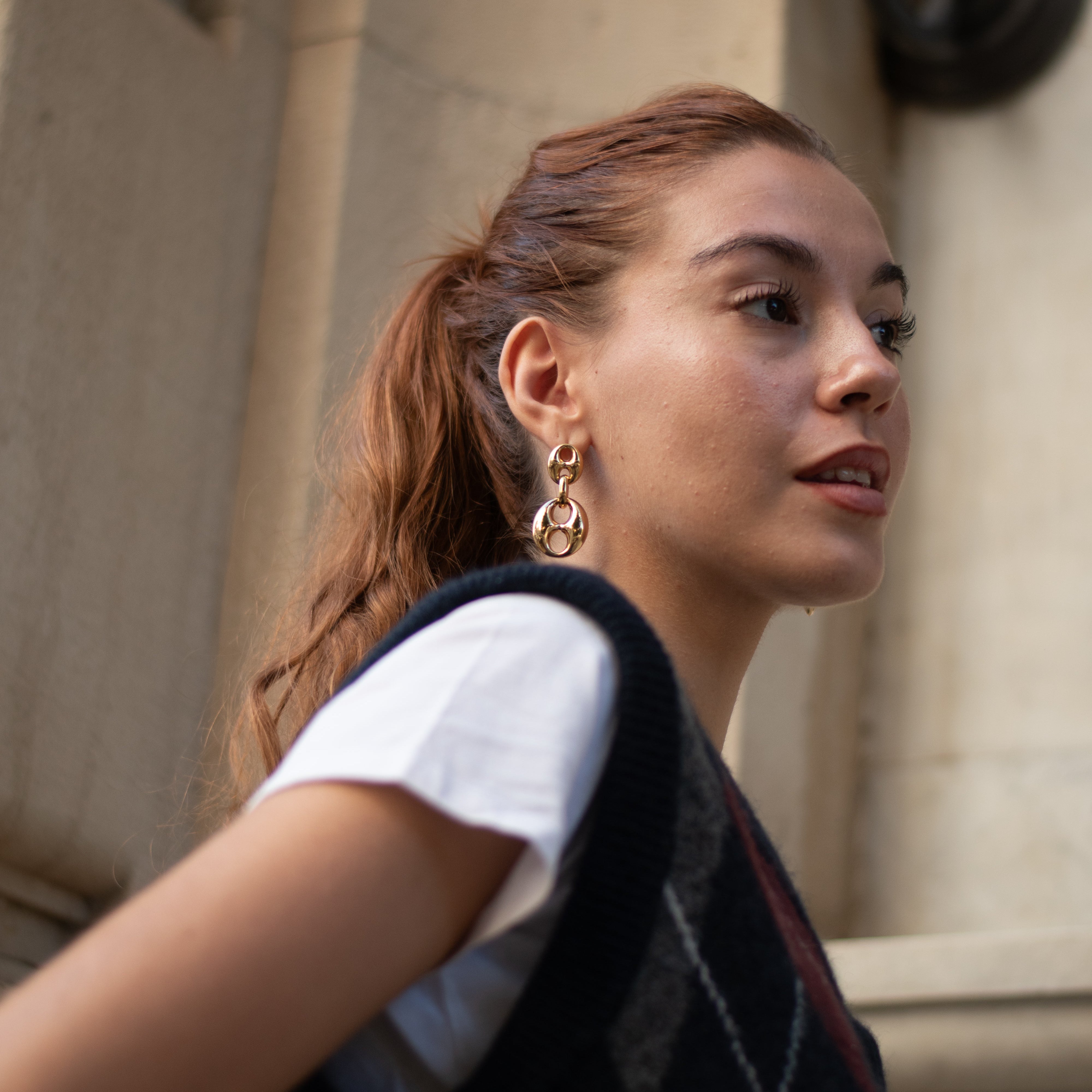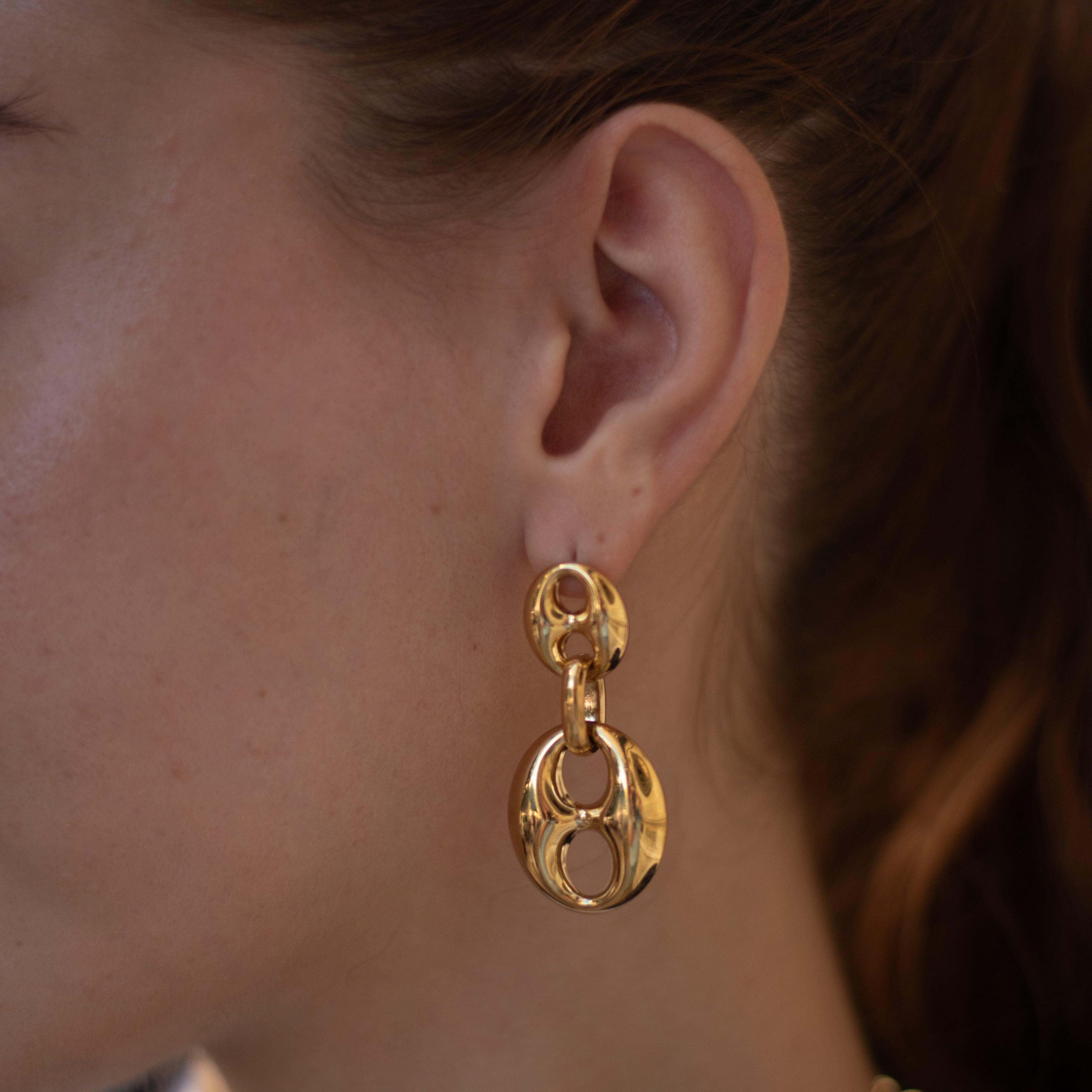 Los pendientes Brote de la colección Steel, están formados por eslabones redondeados unidos unos a otros. Combínalos con su pulsera y su collar a juego.