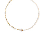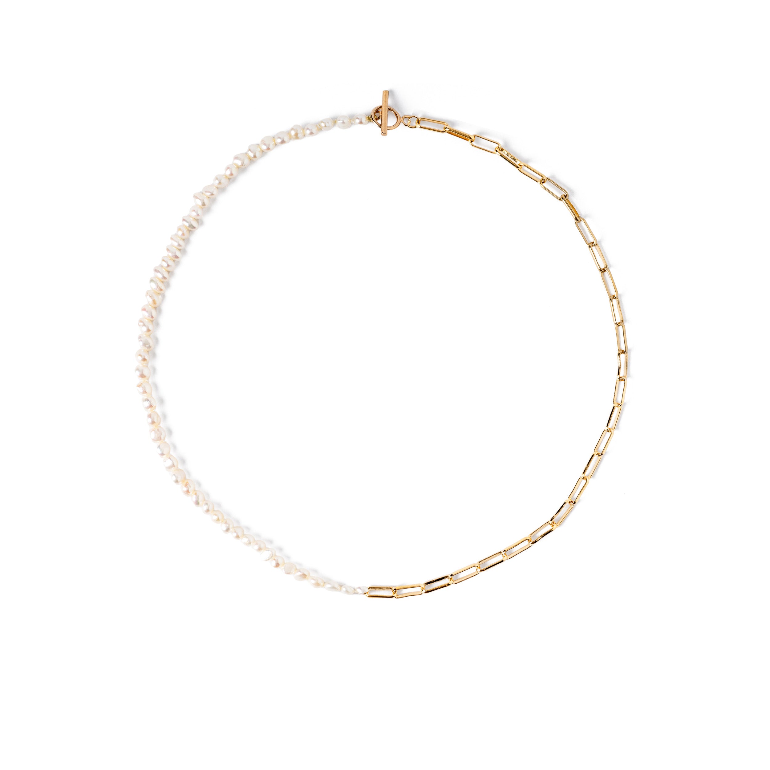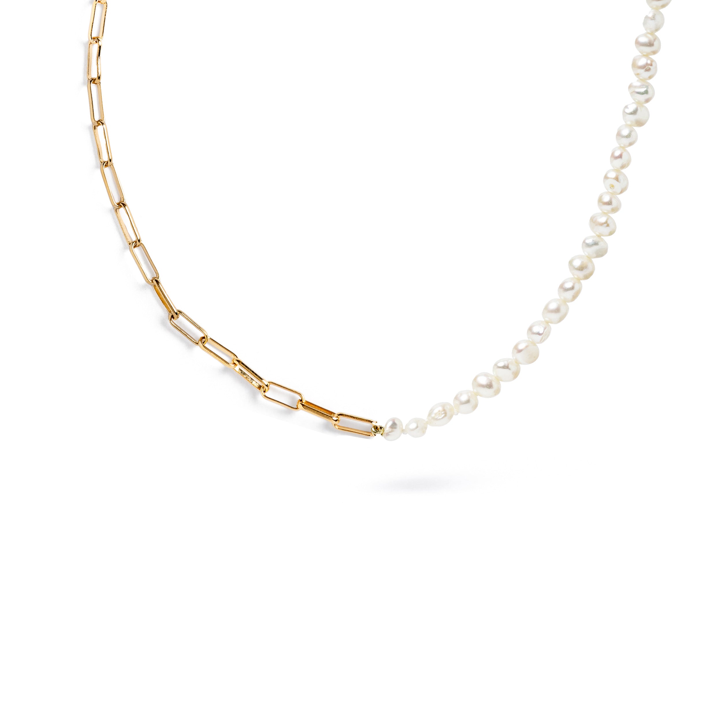 El Collar Ada está formado por una combinación de eslabones y perlas naturales unidas con un cierre delantero donde se puede colocar Charms.