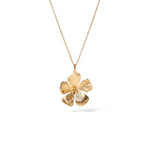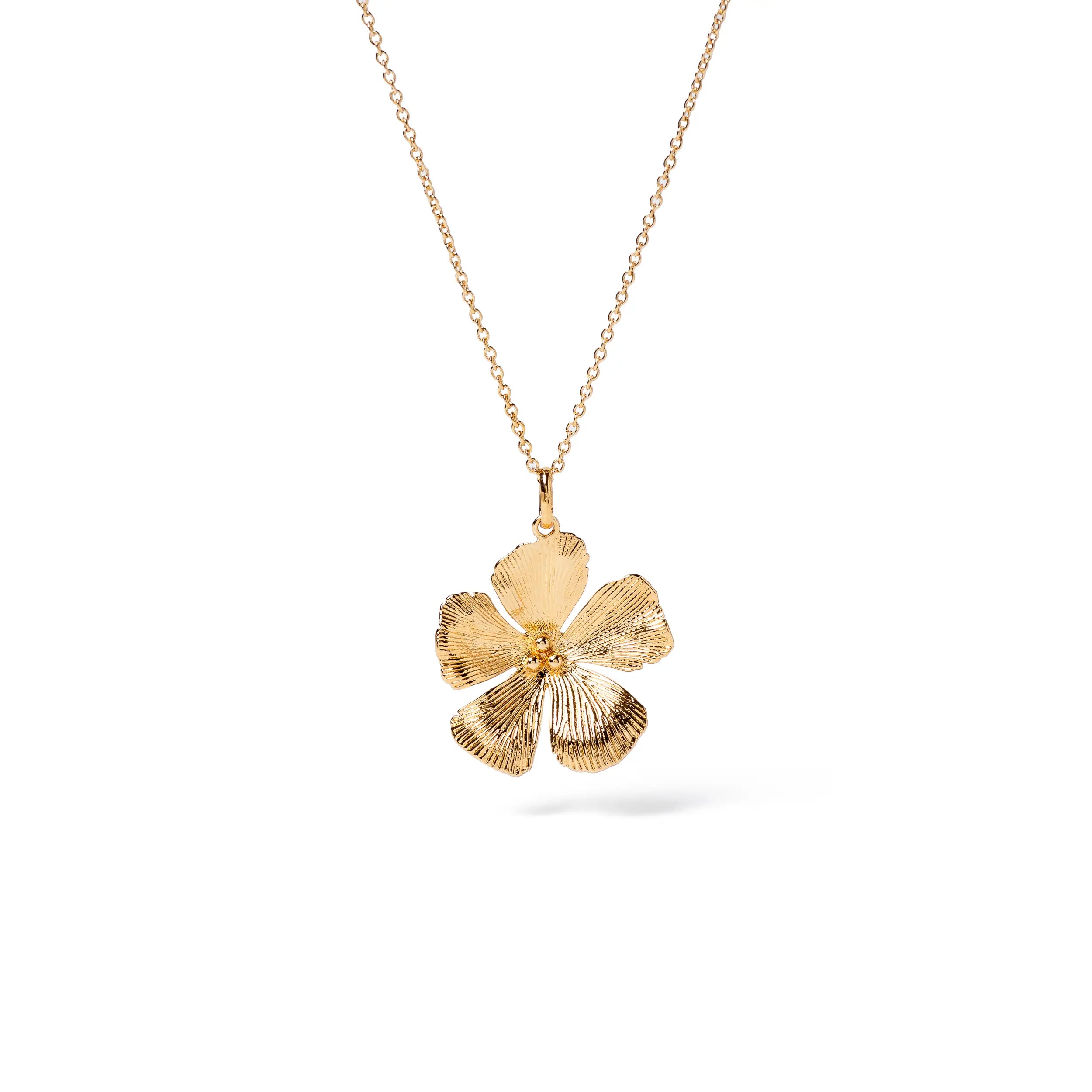 El collar Kala Fleur II está formado por una cadena ajustable con un colgante en forma de flor con textura y relieves.