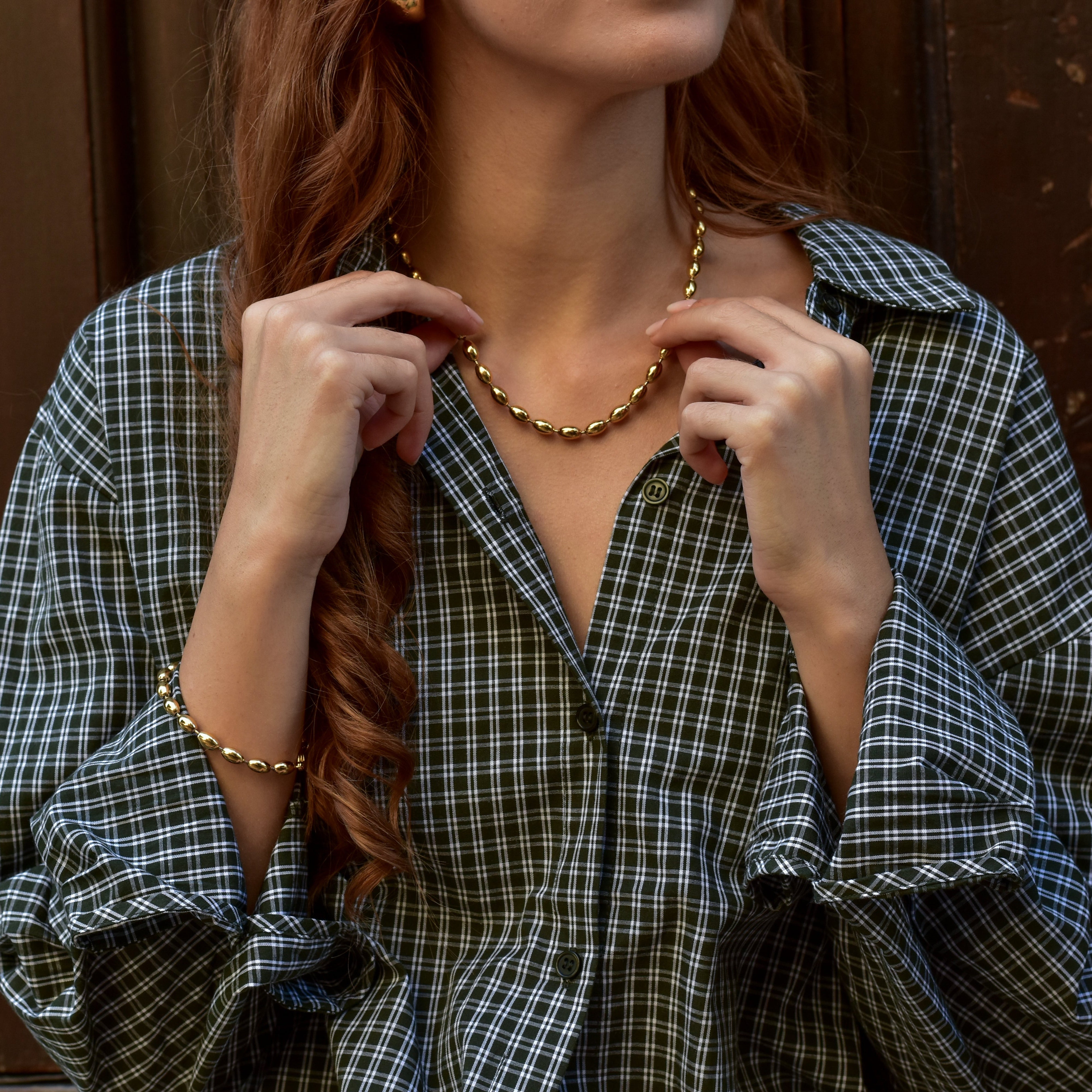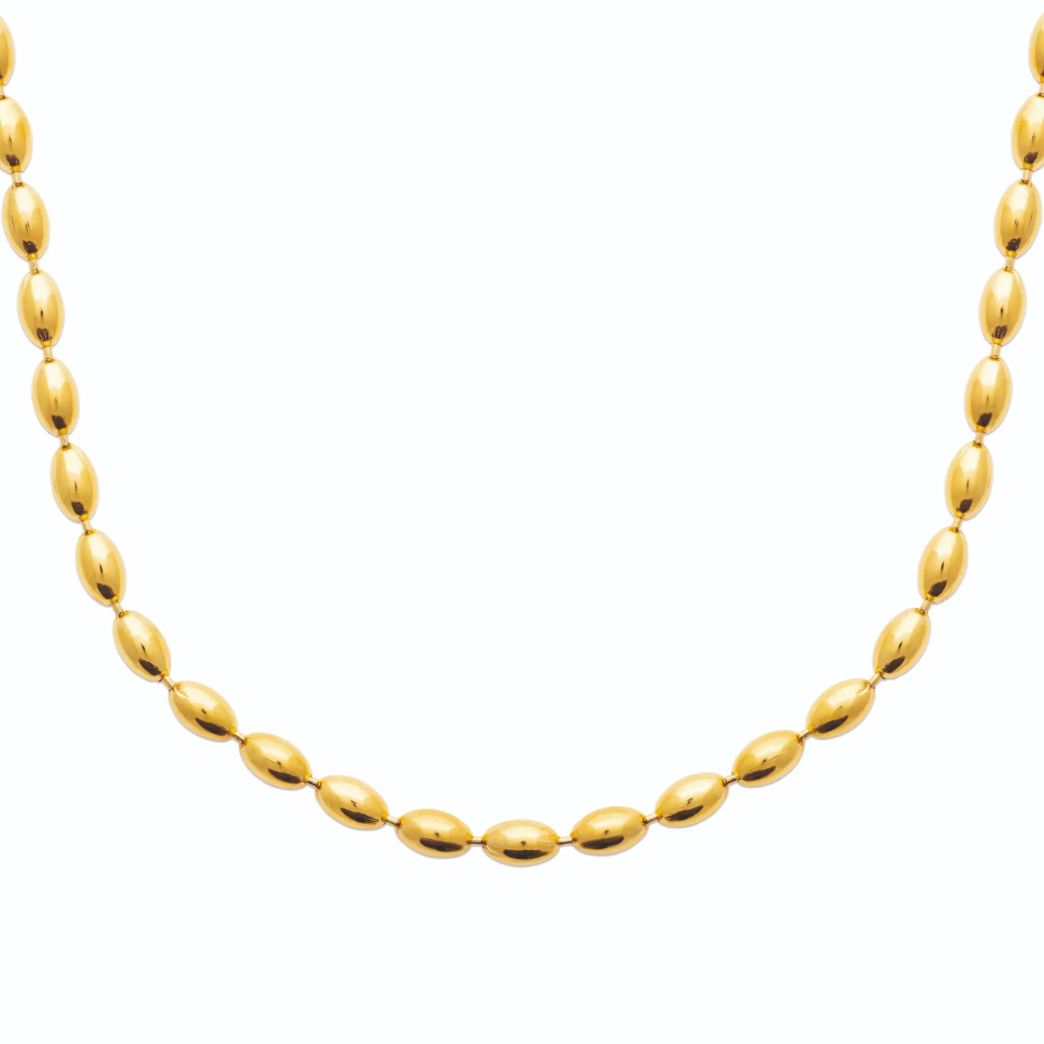 El collar Rice de la colección Steel, está formado por cuentas ovaladas unidas unas a otras. Combínalo con su pulsera a conjunto.