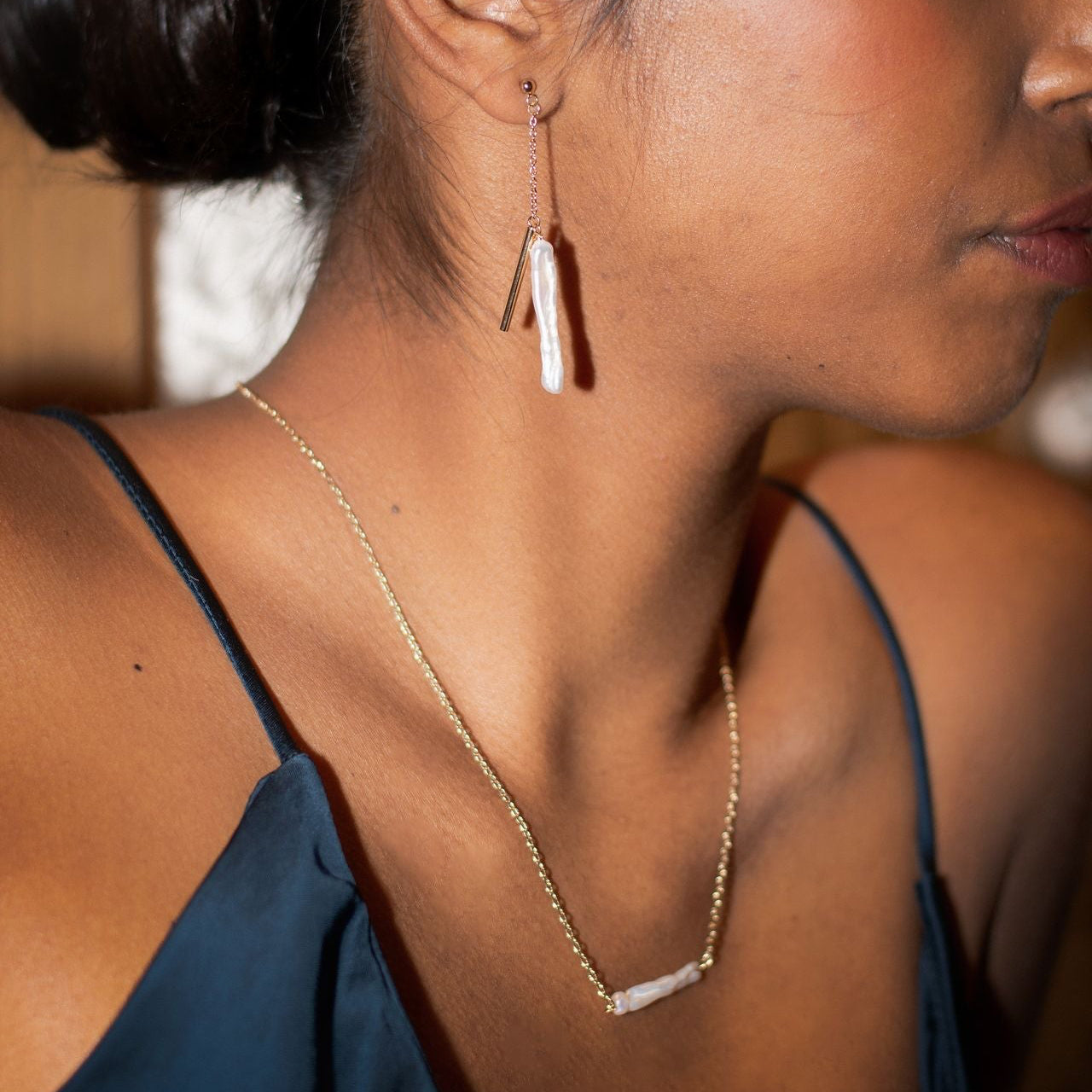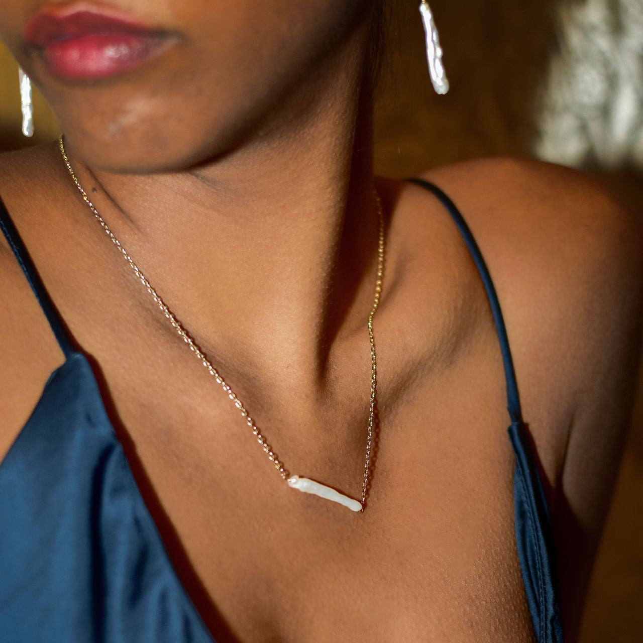 Gargantilla Audrey  es una gargantilla que tiene una perla natural alargada.