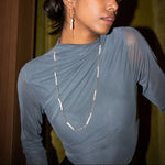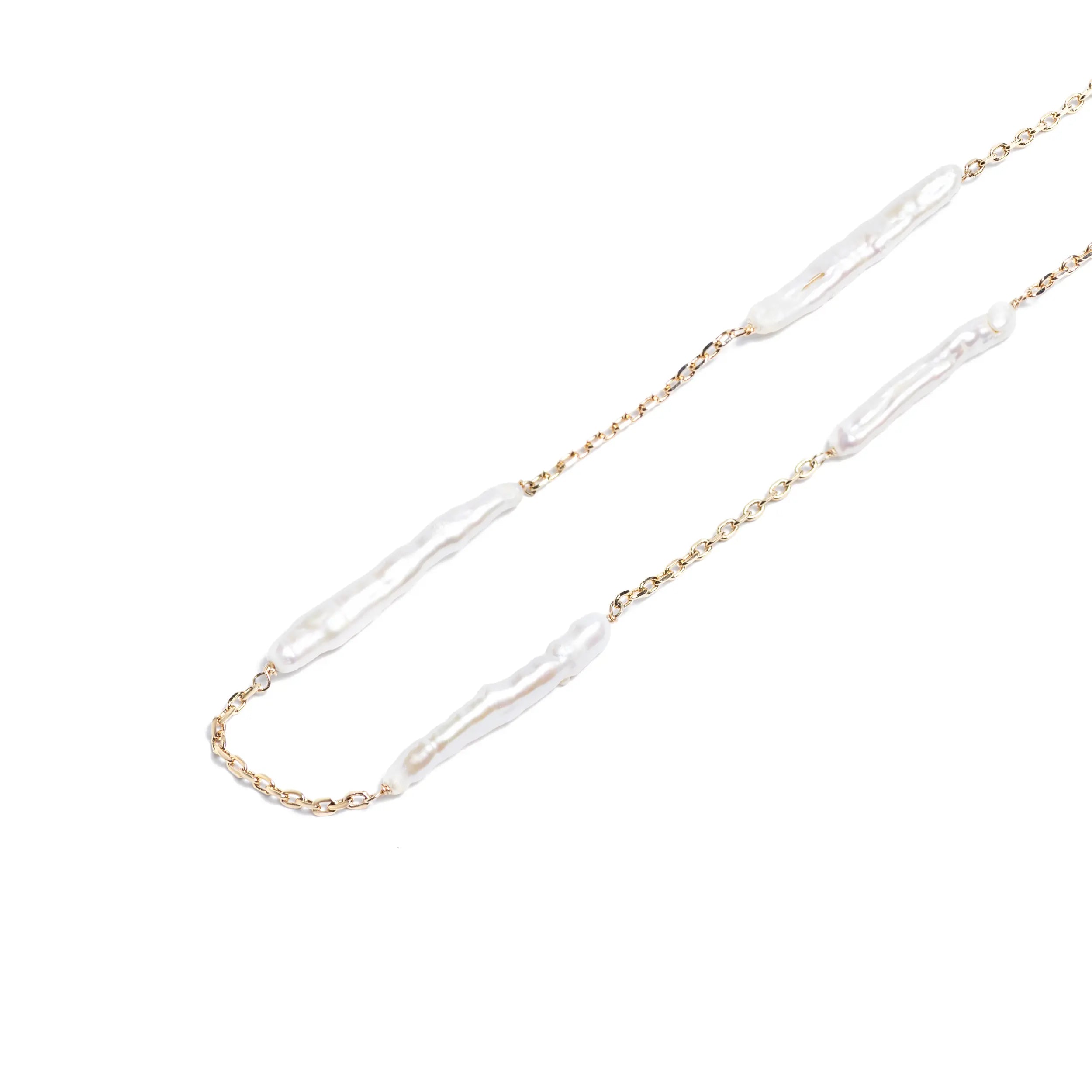 Audrey Long es una gargantilla que alterna la cadena con perlas naturales alargadas.
