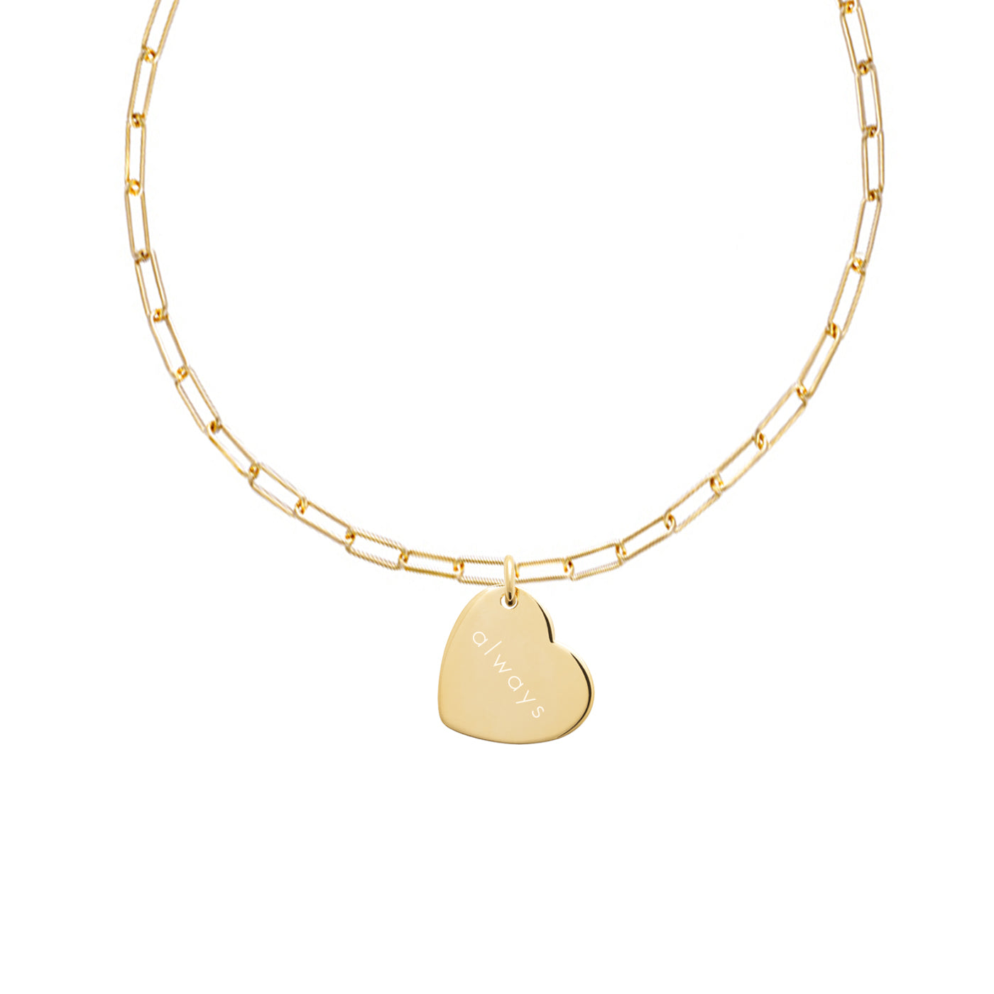 La gargantilla Mia Heart está formada por una cadena de estabones con una placa en forma de corazón.