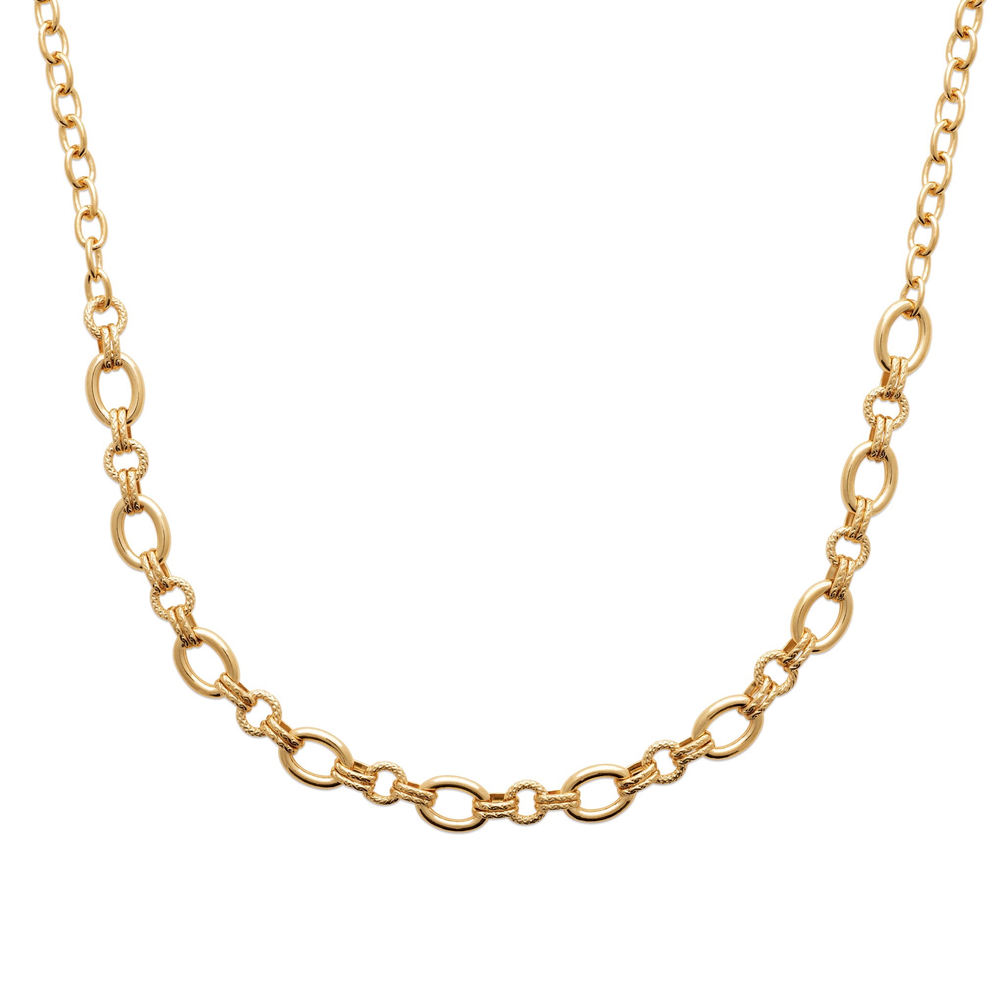 La gargantilla Nisa está formada a partir de eslabones redondeados de tres tamaños distintos unidos unos a otros.