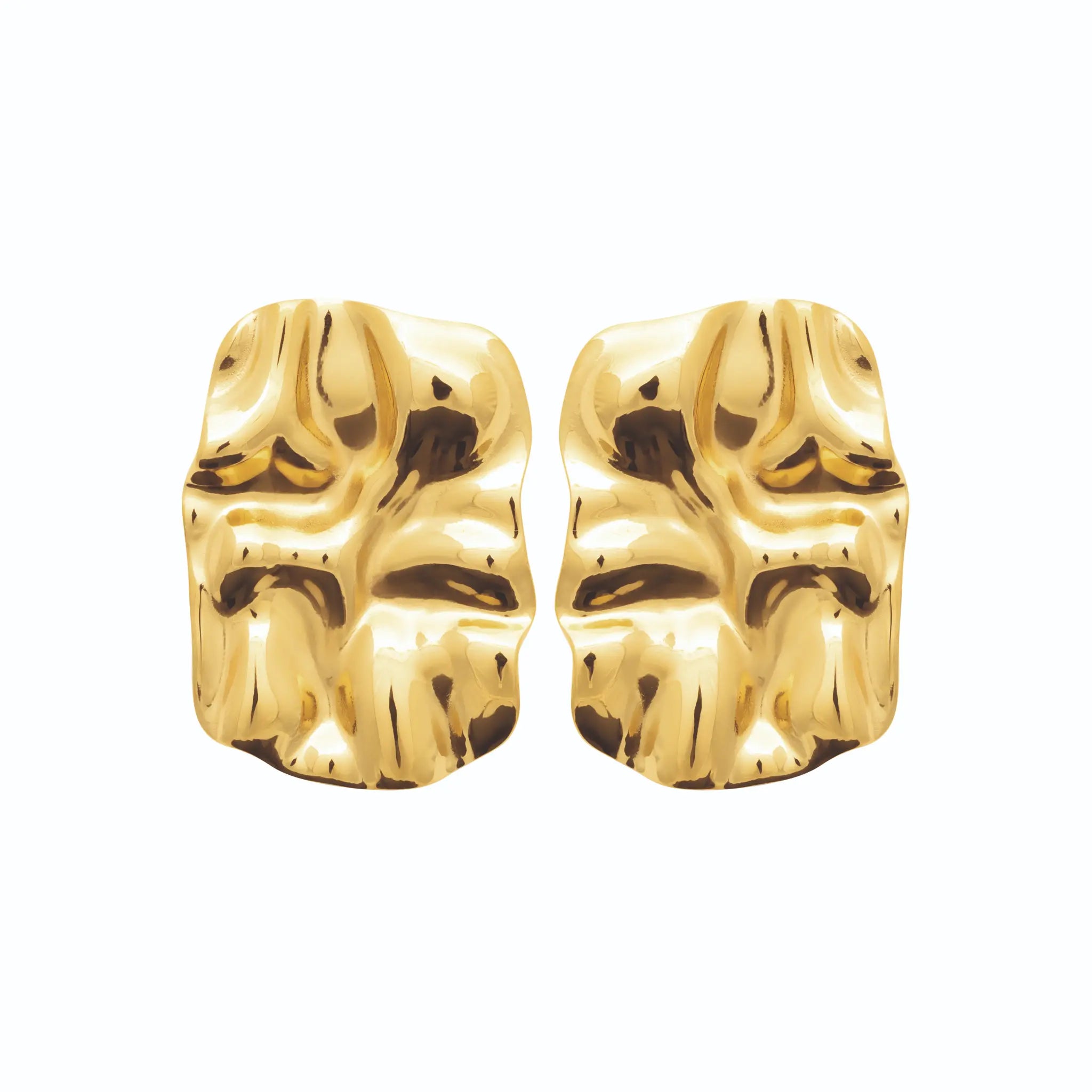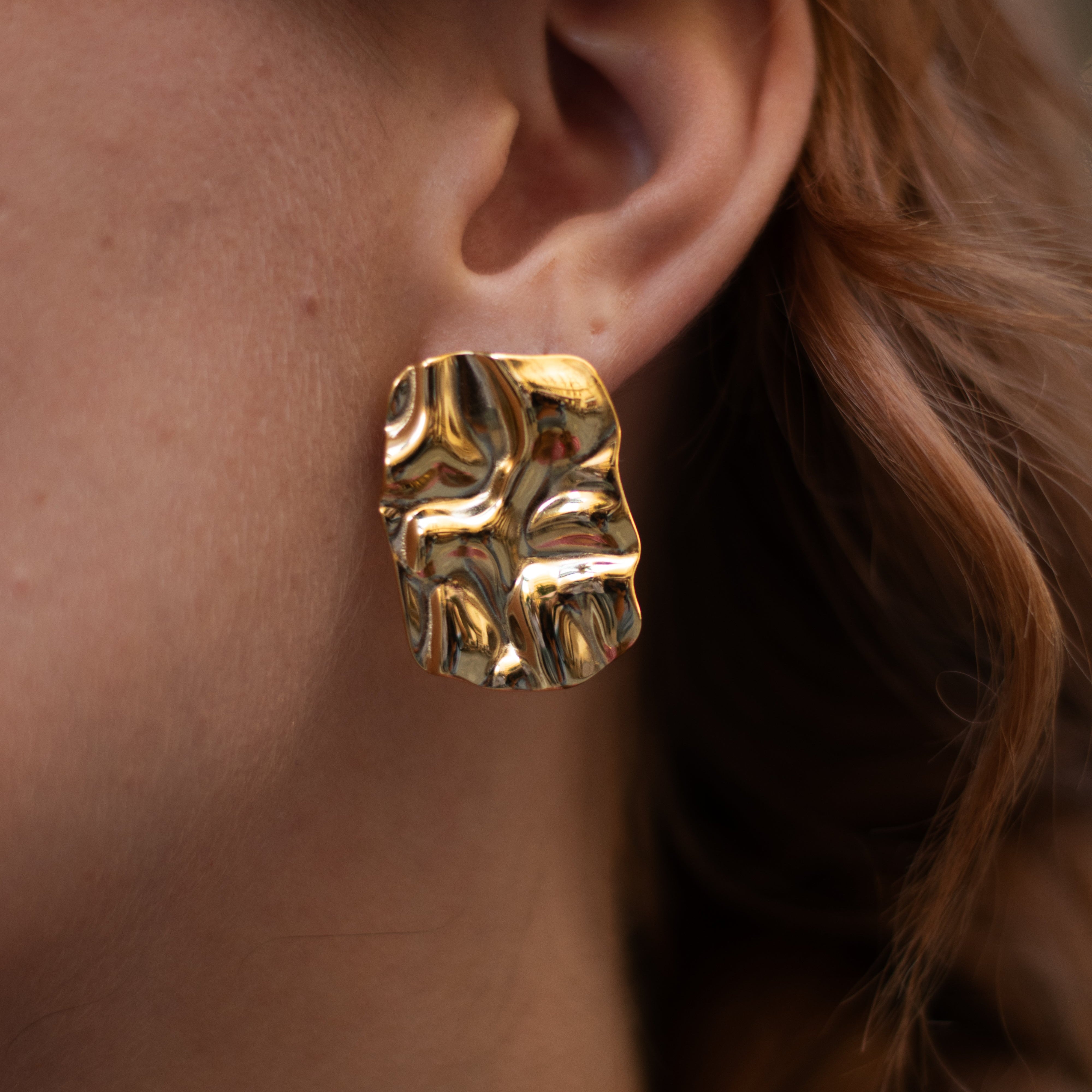 Los pendientes Jona de la colección Steel ofrecen distintos reflejos de luz gracias a su textura orgánica con formas imperfectas.