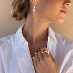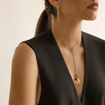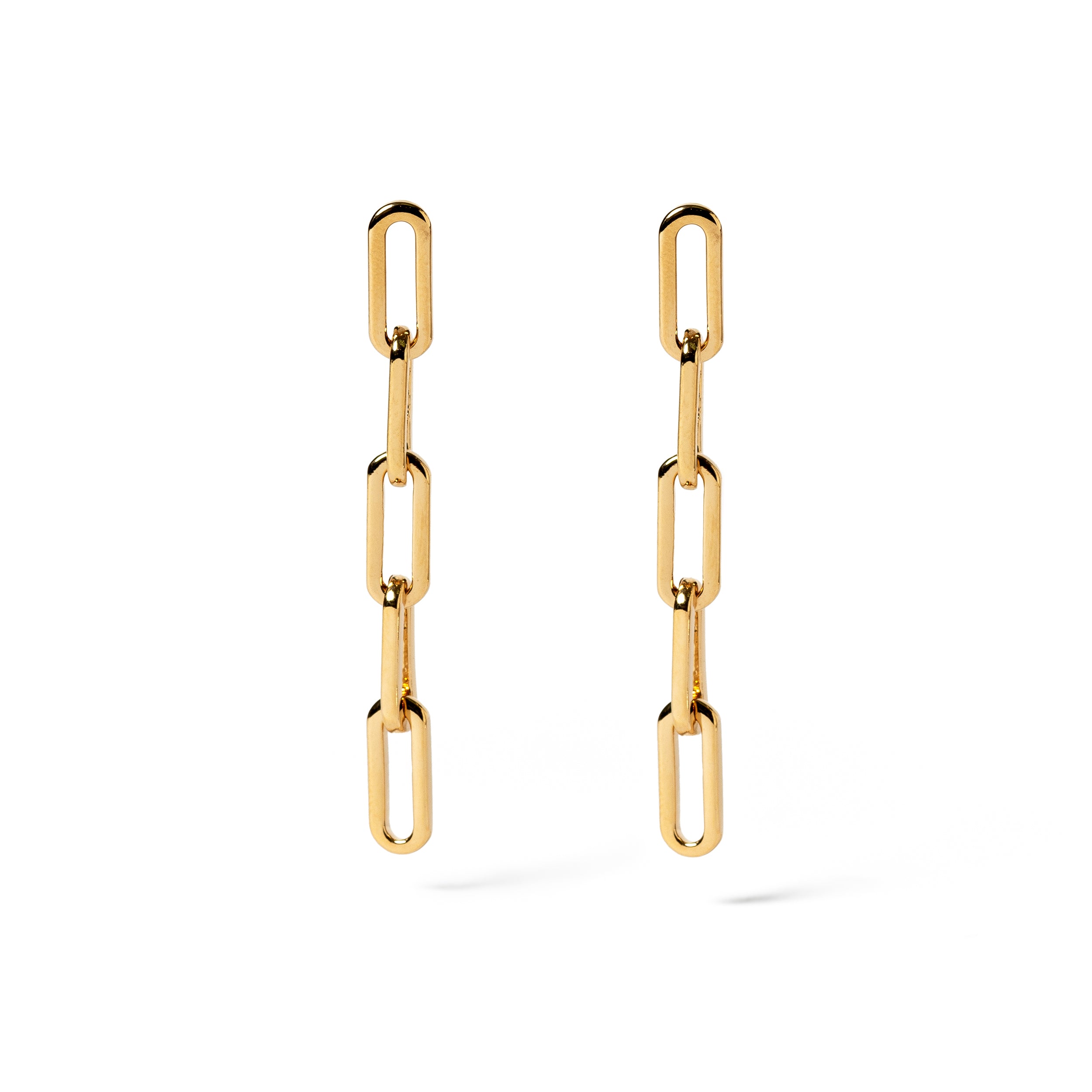 Los pendientes Mia están diseñados a partir de una cadena de 5 eslabones simétricos que cuelgan de manera fluida.