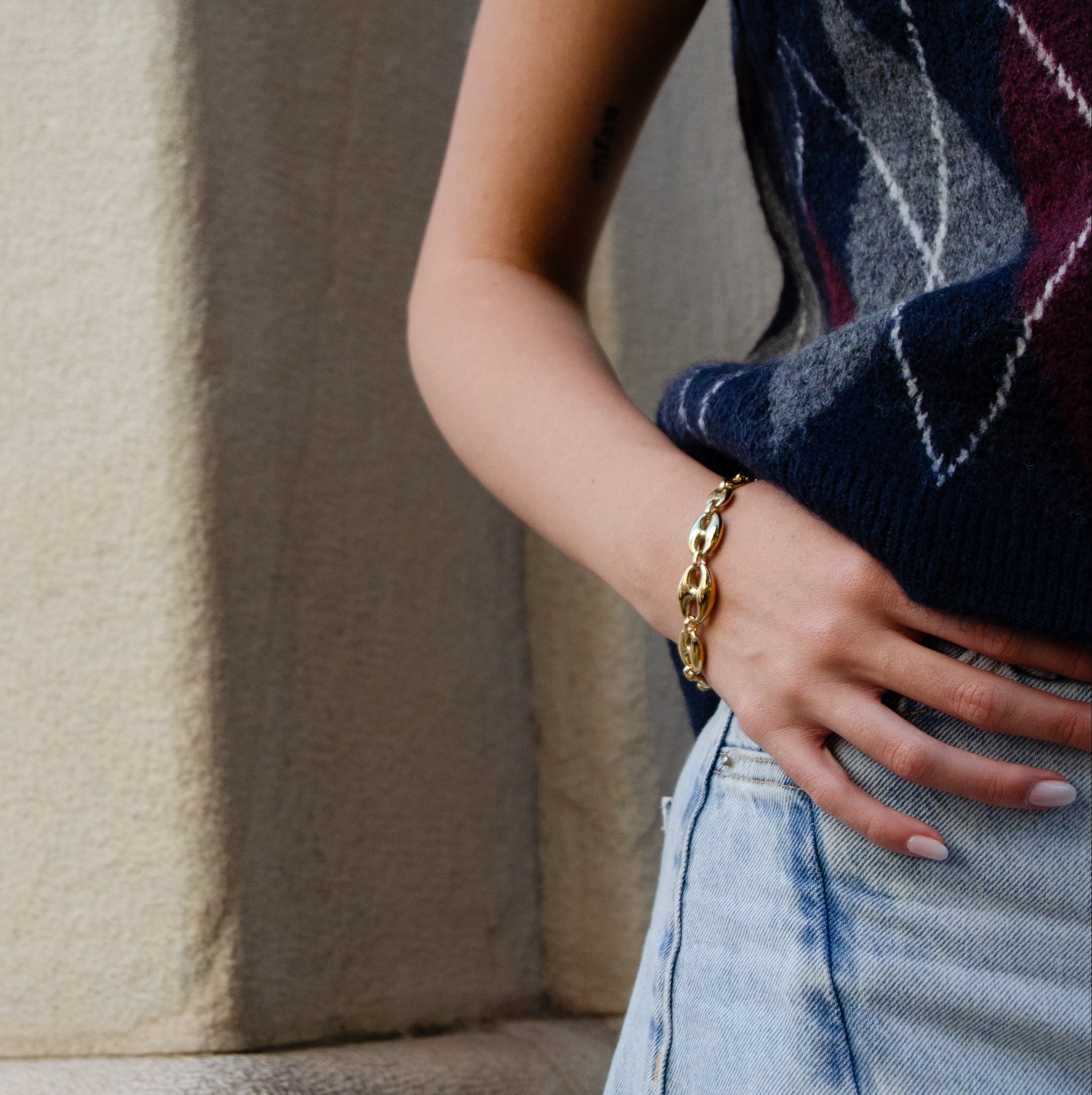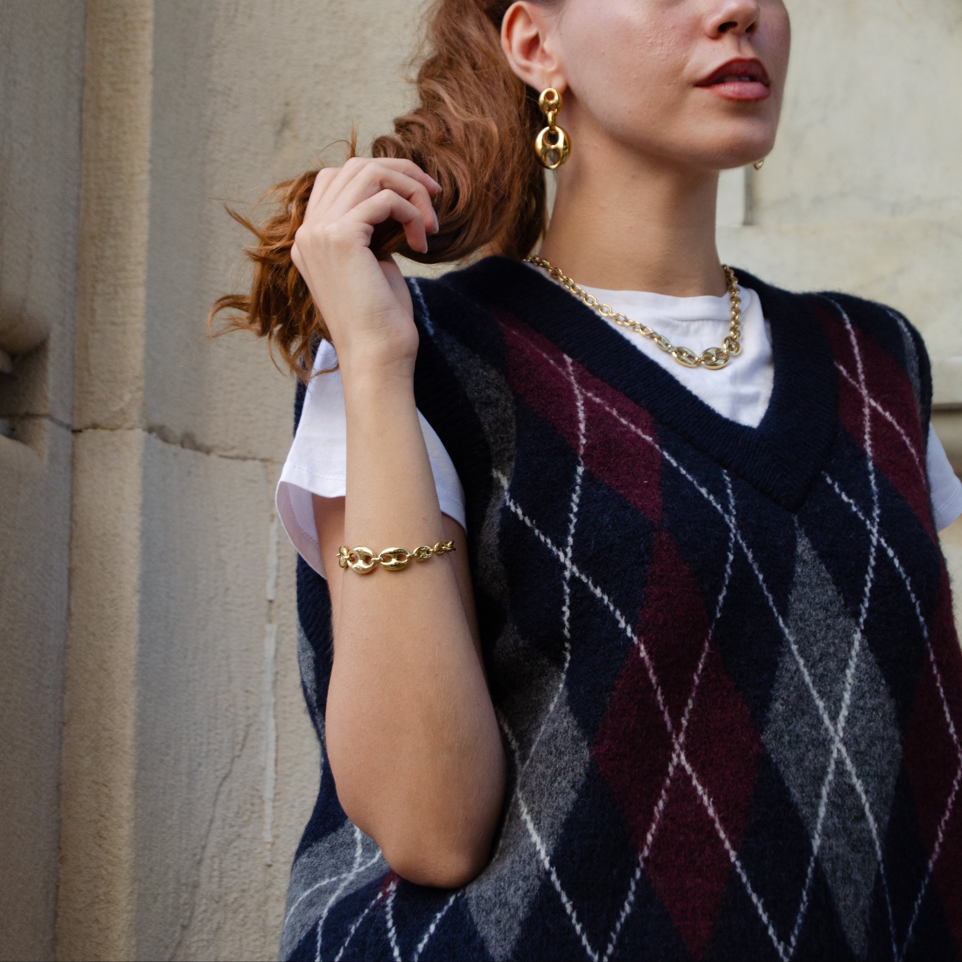 La pulsera Brote de la colección Steel, está formada por eslabones redondeados unidos unos a otros. Combínala con su collar y sus pendientes a juego.