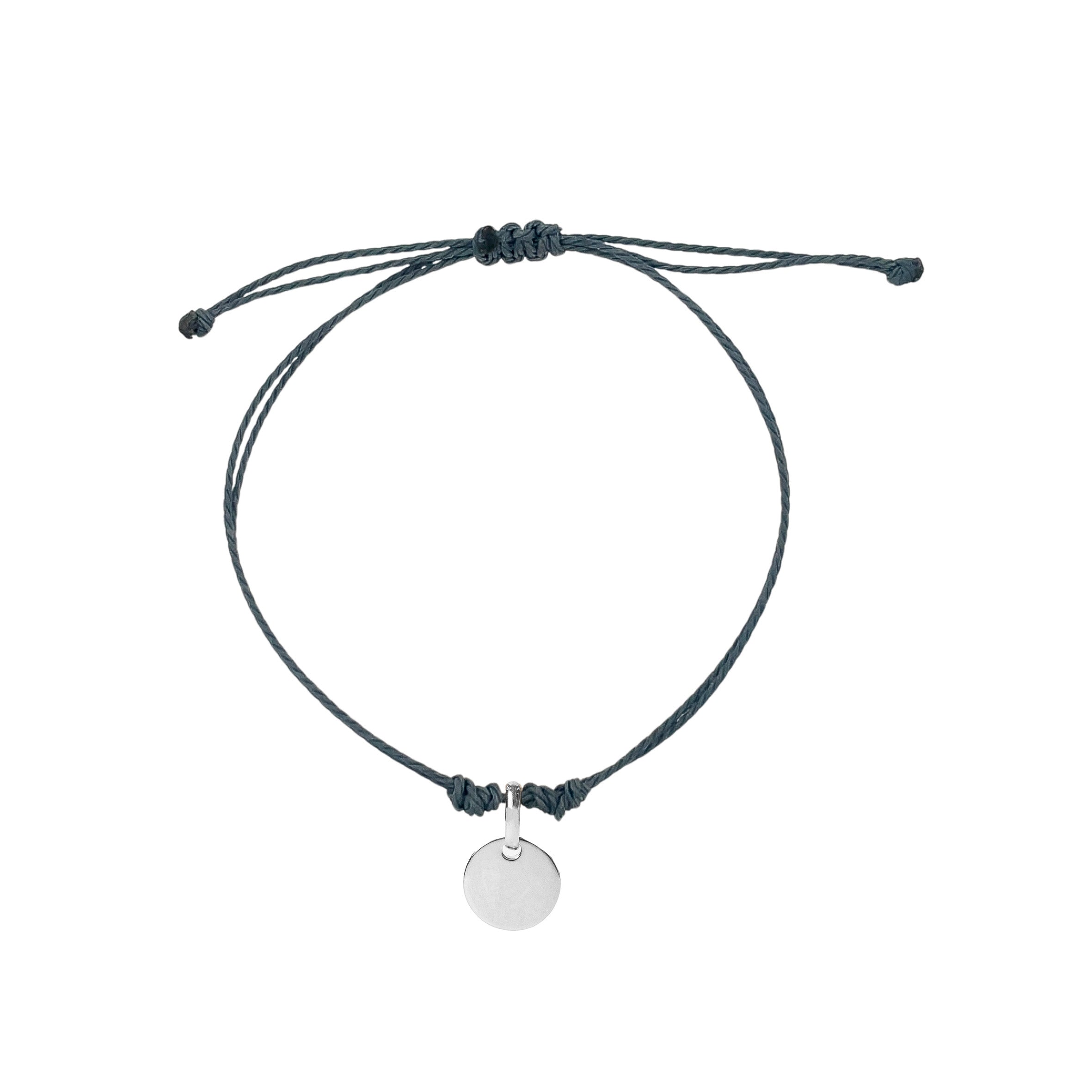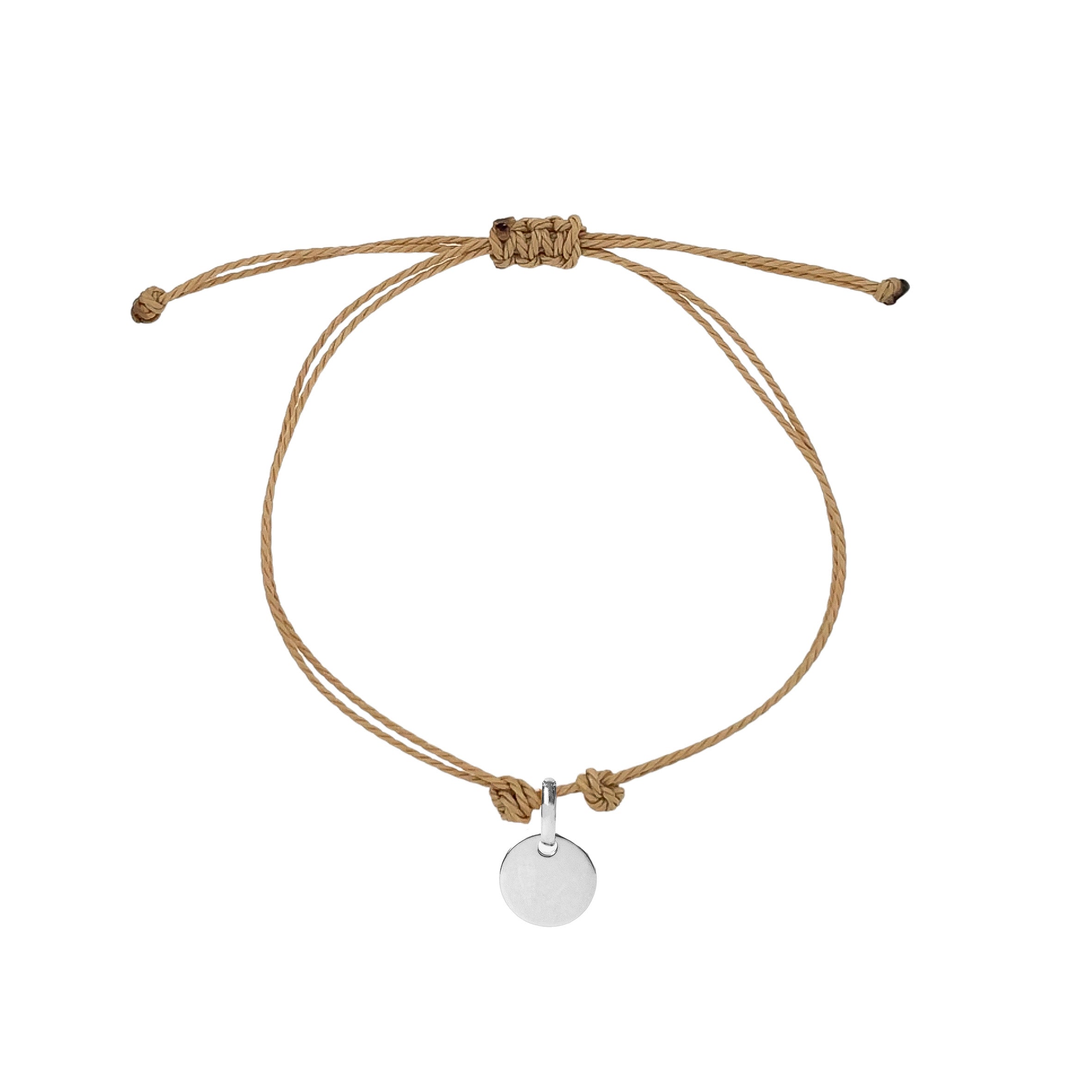 La pulsera Cuerda Perso Mini está hecha con cuerda resistente al estilo macramé unido a una pequeña placa central personalizable.
