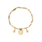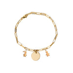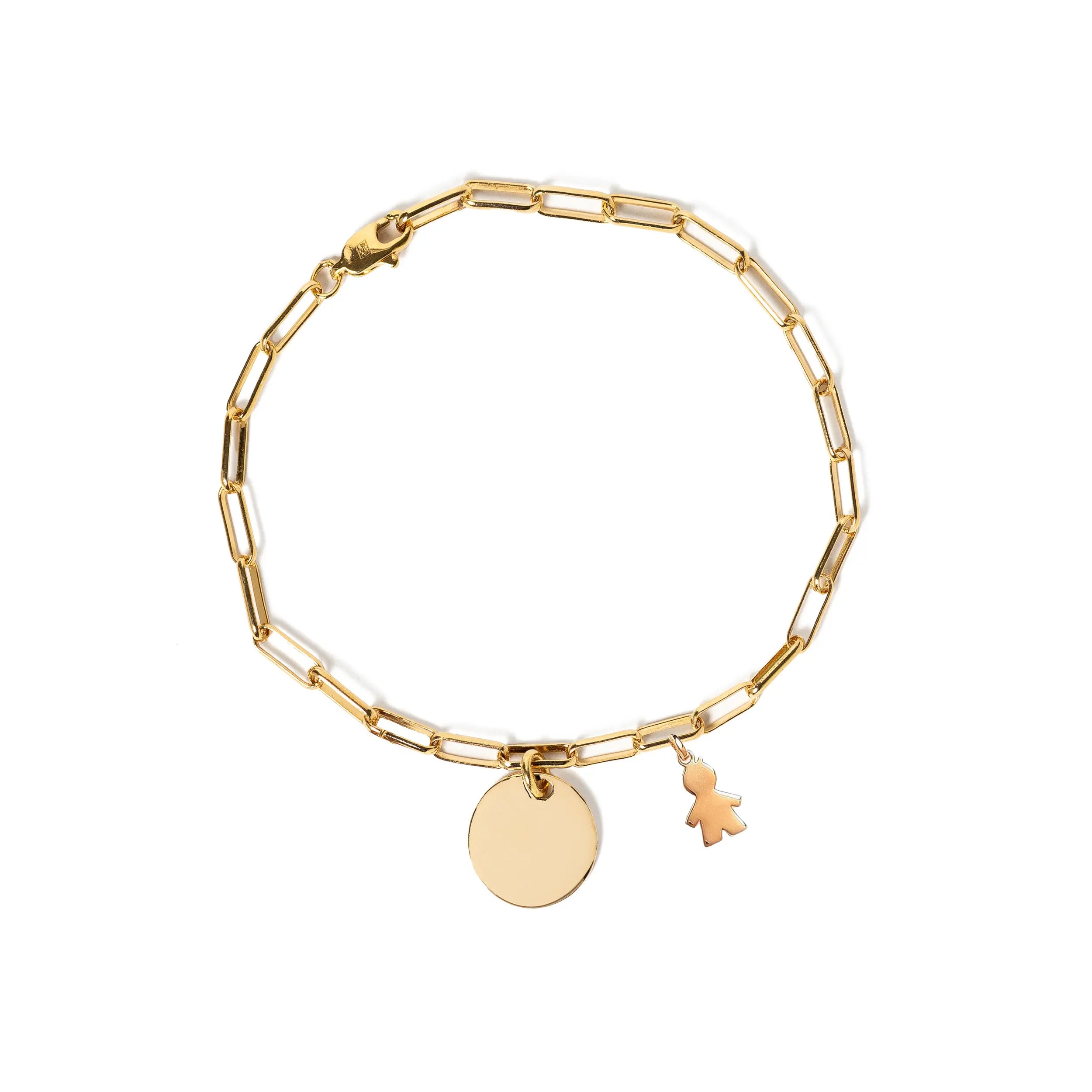 La pulsera Mia Perso Boy está formada por una cadena de eslabones ajustable de la que cuelga una placa de 15 mm y un charm con la silueta de un niño o una niña a tu elección.
