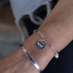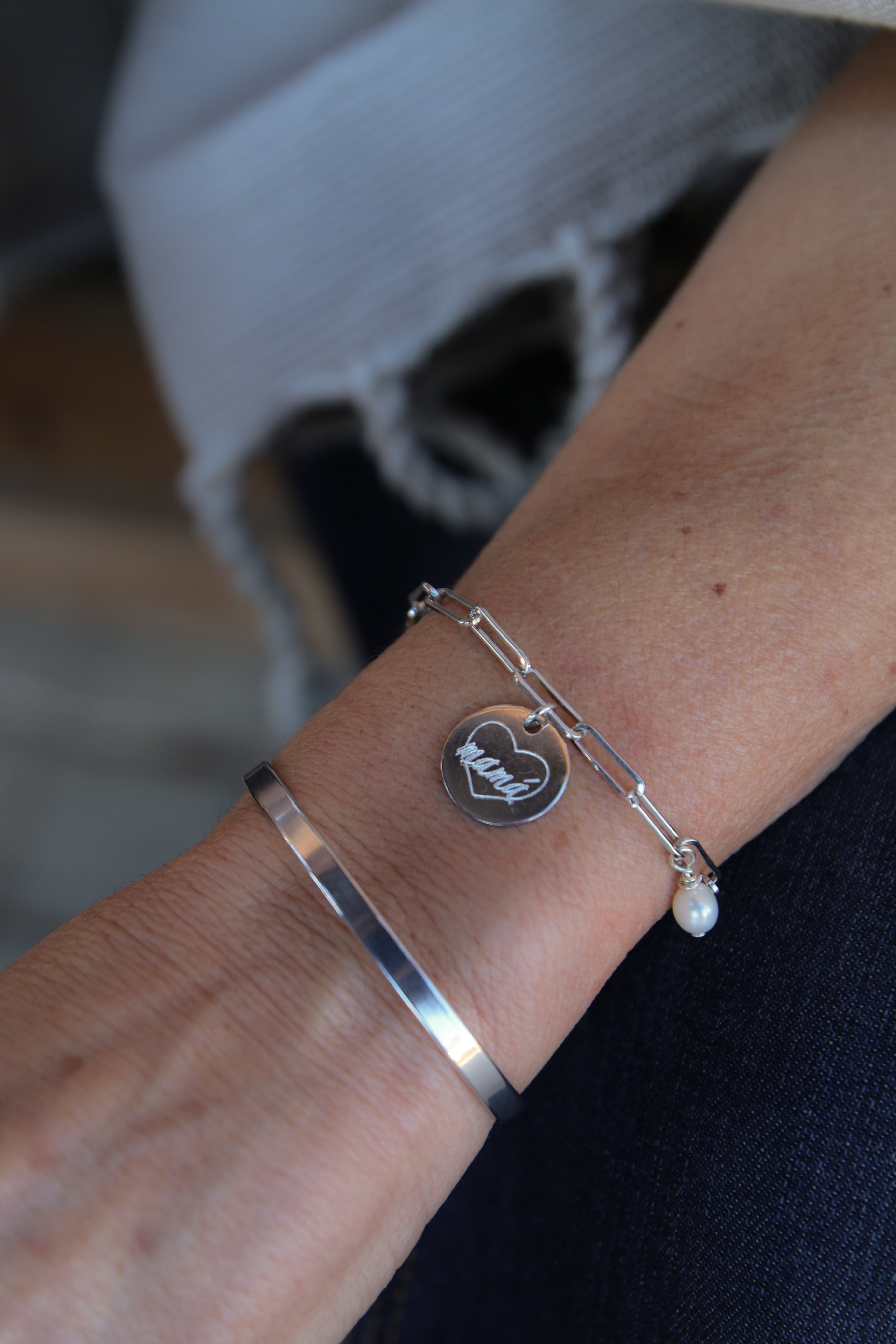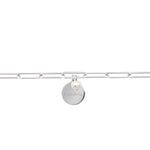 La pulsera Mia Perso está formada por una cadena de eslabones ajustable de la que cuelga una placa de 15 mm y un charm de piedra natural.